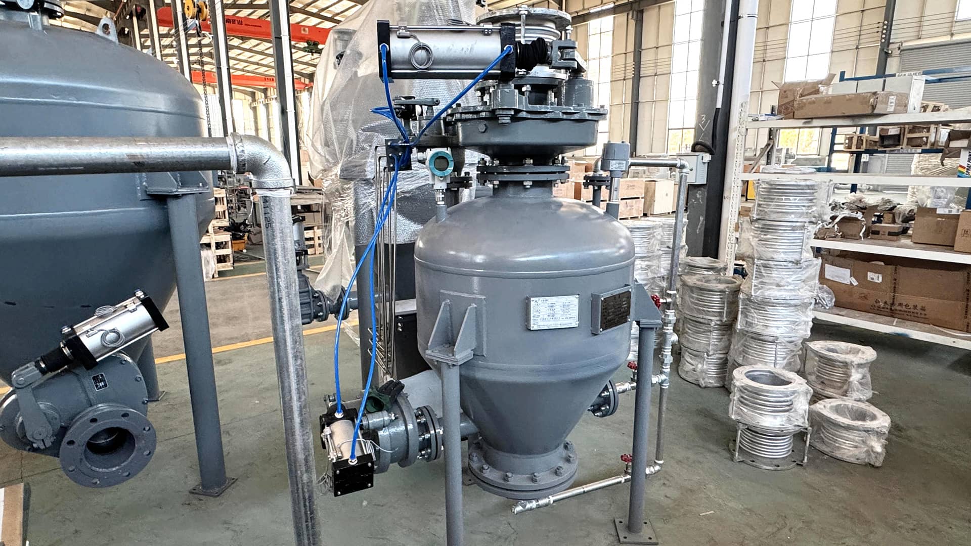 氧化钙粉末气力输送优势在于输送效率高、能耗低、输送距离远、输送过程中物料不易结块,且系统运行稳定,操作简便,可实现连续化生产,降低生产成本,同时减少粉尘污染,提高生产环境质量。